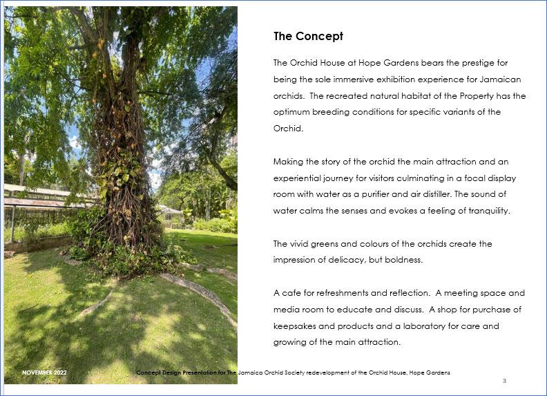 A key project that the JOS has undertaken to mark its 90th Anniversary is the restoration of the Hope Gardens Orchid House and its immediate surrounding areas. The project has the support of the Nature Preservation Foundation of Jamaica (NPFJ) who manages the gardens, and through the NPFJ, the JOS is working with the Faculty of the Built Environment at the University of Technology to obtain technical, architectural and planning services.